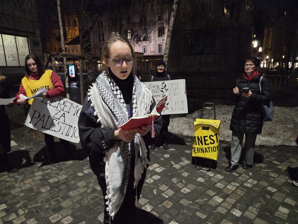 V Ljubljani pa se lahko pridružiš prostovoljki Ani, ki koordinira branje palestinske poezije ob četrtkih ob 17. uri na Prešernovem trgu v Ljubljani.